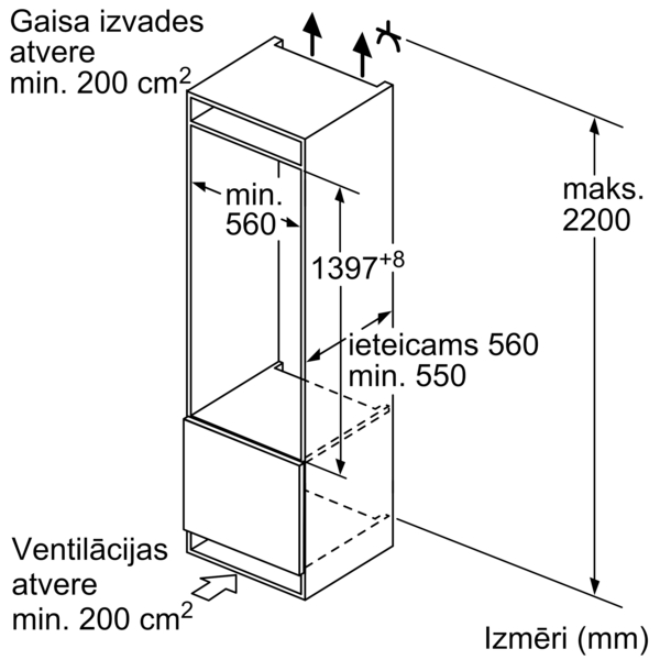 SERIE 6, Встроенный холодильник, 140 х 56 см, KIR51AFE0⠀
