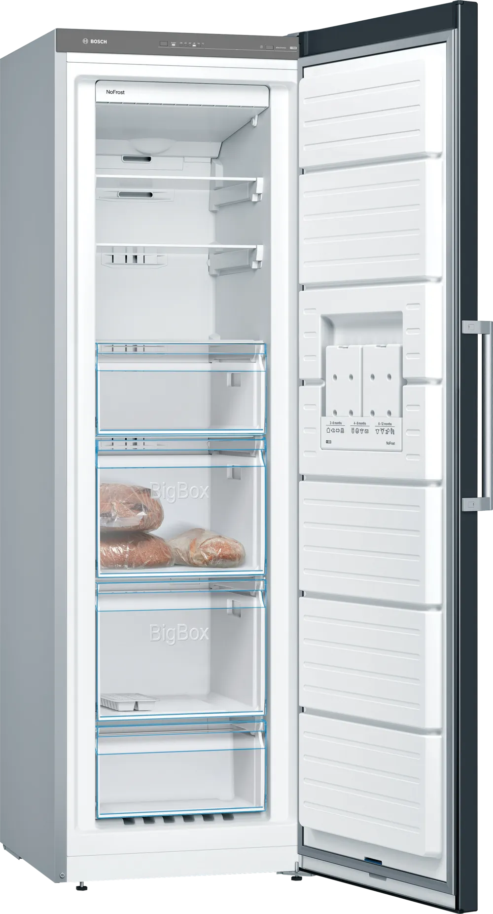 Вы можете легко снять все стеклянные полки, пригодные для замораживания, чтобы освободить место, например, для многослойного торта или целой индейки. Крупногабаритные продукты, например семейную пиццу, можно без труда разместить на стеклянных поверхностях.