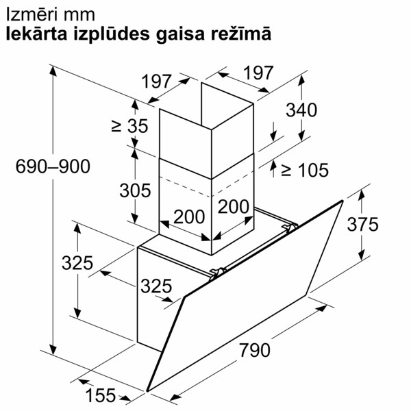 Габариты в режиме рециркуляции воздуха (ВхШхГ): 720-975 х 790 х 325 мм.