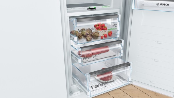 The VitaFresh pro system offers the perfect storage environment for all your fresh food thanks to climate control and +0°C technology. Fish and meat stays fresh for longer at a temperature +0°C. Fruit and vegetables benefit from optimized climate conditions. More food to enjoy, less food wasted.
