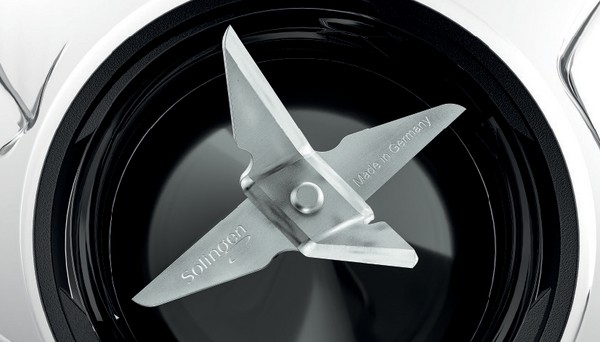 Efektīva blendēšana ar izturīgiem asmeņiem.Vienmērīga tekstūra norāda uz efektīviem asmeņiem. ProEdge nerūsējošā tērauda asmeņi ir ražoti Solingenā, pasaulslavenajā Vācijas asmeņu pilsētā. Asmeņu malas ir pastiprinātas labākai izturībai.