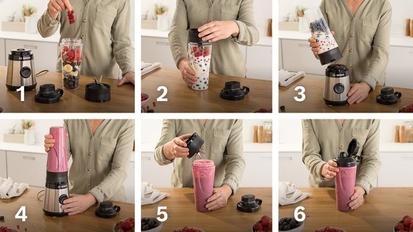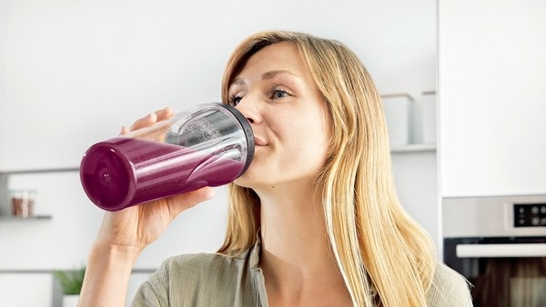 Baudiet svaigus smūtijus visur, kurp vien ejat.Ietaupiet laiku un blendējiet tieši ToGo pudelē. ToGo pudeli nav jāiztukšo. Drošību sniedz īpašais SafeLock mehānisms, kas novērš nejaušu krūzes satura noplūšanu blendera pamatnē. Tāpat arī ToGo pudeles vāciņš ir drošs pret noplūdēm.