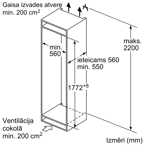 Kategoriju atlase kategorijās N 70 iebūvēts ledusskapis-saldētava 177,2 x 55,8 cm KI6873FE0: