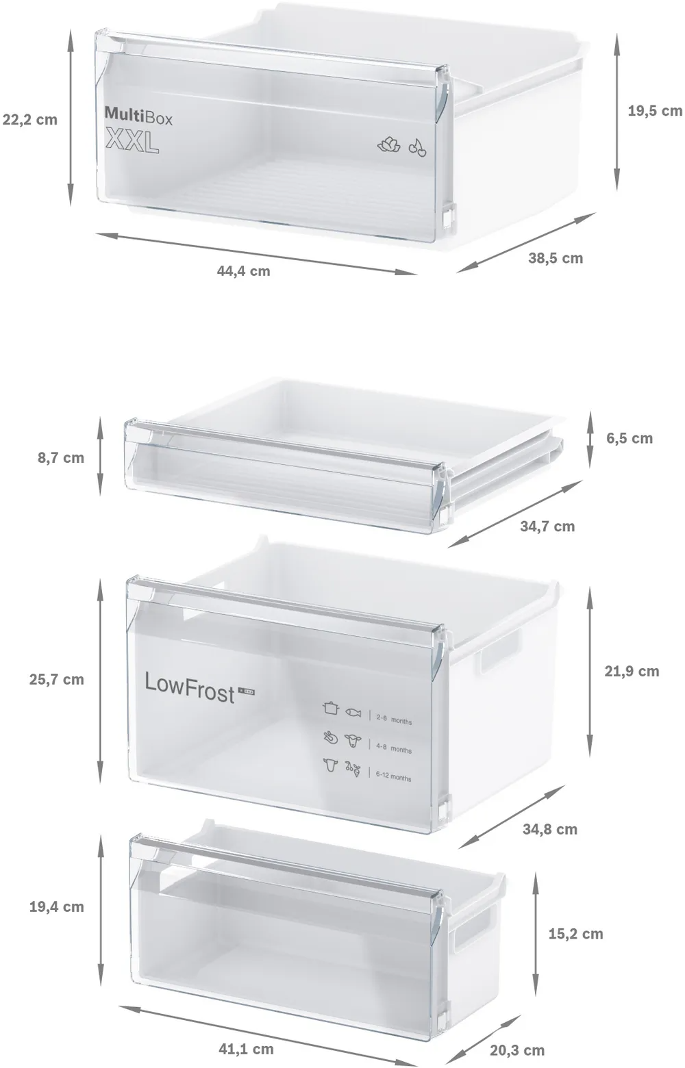 Dārzeņu un augļu uzglabāšana vēl nekad nav bijusi tik vienkārša. Mūsu MultiBox XXL īpaši lielais nodalījums nodrošina ievērojami vairāk vietas svaigajiem augļiem un dārzeņiem. Tas ir īpaši noderīgi, kad vēlies nodrošināties ar svaigo salātu rezervēm vai atdzesēt arbūzu savam nākamajam izbraucienam uz jūru.