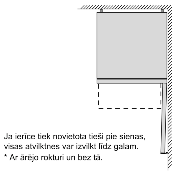 Novieto savu ledusskapi, kur vien vēlies.Citiem tirgū pieejamajiem standarta ledusskapijiem durvju un atvilktņu atvēršanai nepieciešams apmēram 10 cm attālums no sānu sienām.Pateicoties Perfect Fit, mūsu brīvi stāvošos ledusskapjus iespējams novietot tieši pie sienas vai citām mēbelēm.Ledusskapja platums atbilst nišas izmēriem.