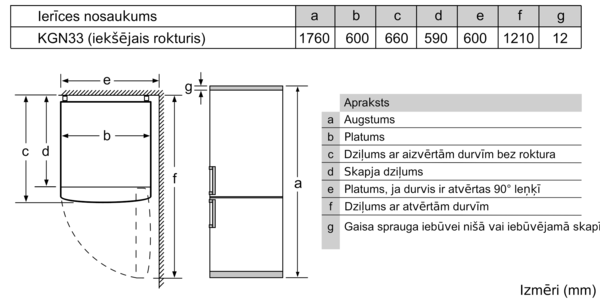 Kategoriju atlase kategorijās Sērija 2 Ledusskapja skapis 176 x 60 cm KGN33NWEB: