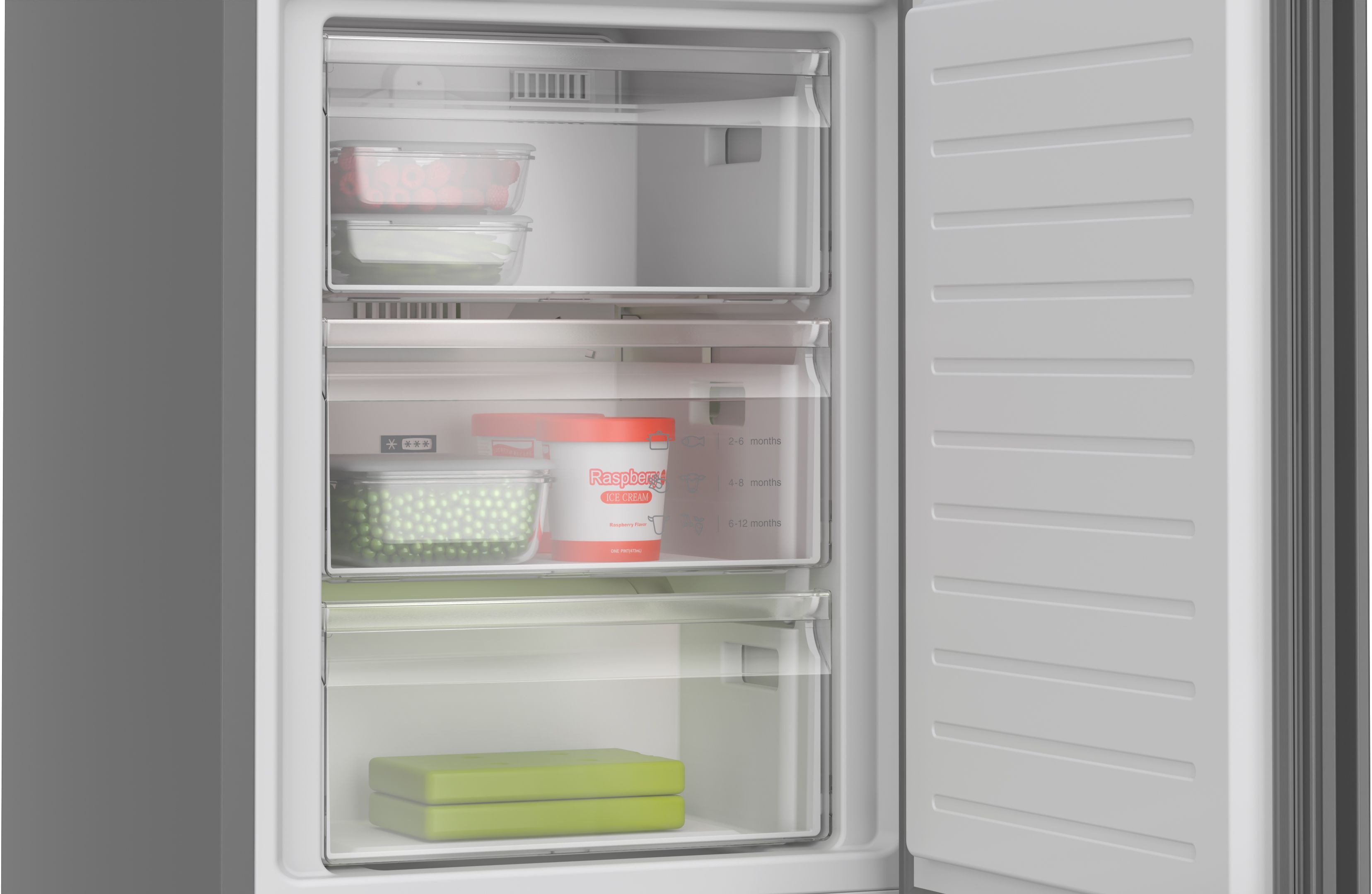 Ar funkciju Super Cooling vari īslaicīgi pazemināt ledusskapja temperatūru pirms dodies iepirkties. Tādējādi jaunie produkti tiks uzglabāti pareizajā temperatūrā. Nospied pogu, lai pazeminātu temperatūru par maksimāli 2 °C, un gatavs! Funkcija automātiski izslēdzas pēc aptuveni 6-15 h, lai lieki netērētu enerģiju. Un vēl – ja ierīce ir savienota ar Home Connect, iestati Super Cooling tieši lietotnē