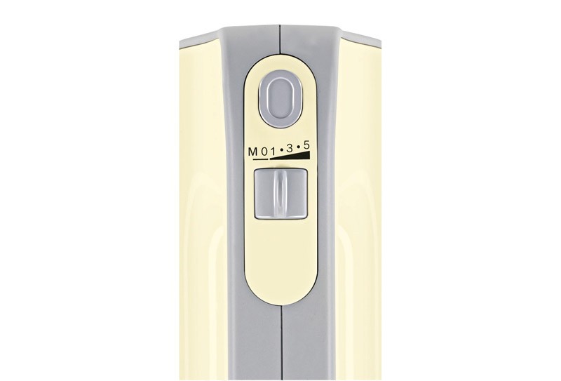 Pieci ātrumi. Pilnīga kontrole kulšanas laikā.Ar vienkāršu slēdzi variet mainīt ātrumus. Rokas mikserim ir pieci ātruma iestatījumi, lai iegūtu vēlamo konsistenci, gan iemaisot sastāvdaļas, gan kuļot olu baltumus ar maksimālo ātrumu. Turbo funkcija ir papildu jauda, lai paveiktu grūtākus putošanas uzdevumus.
