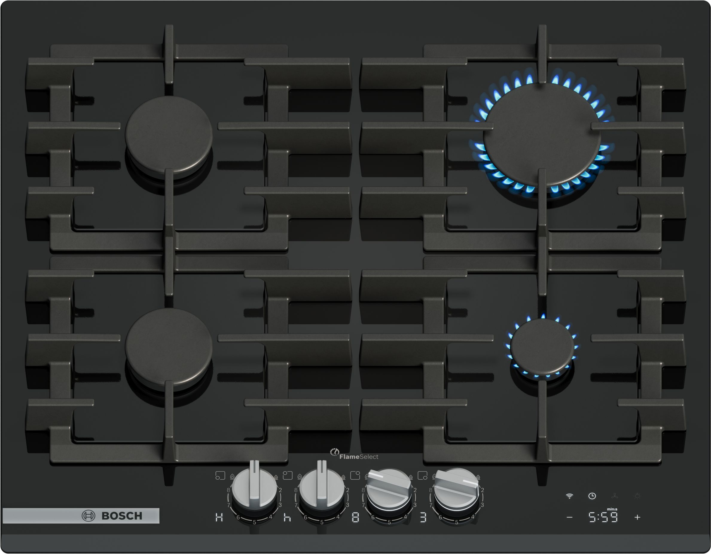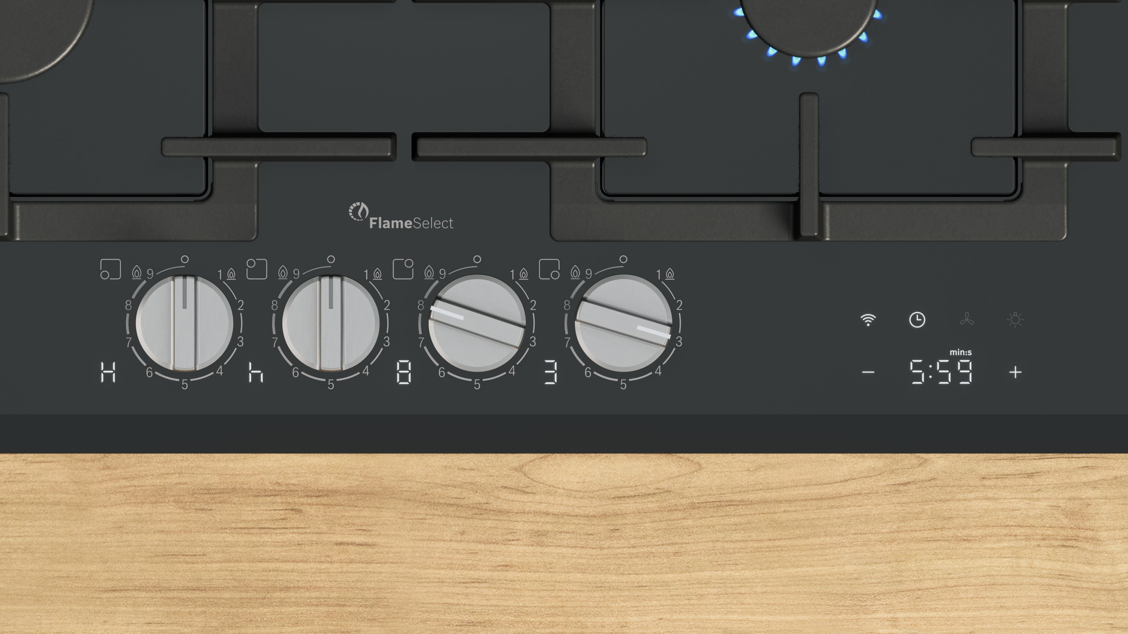 Iztēlojies šo: tu esi kulinārajā piedzīvojumā, rokas nedaudz netīras, un tev vajag iestatīt taimeri vai regulēt nosūcēja gaismu. Izklausās pēc haosa receptes, vai ne? Taču ne ar Bosch. Mūsu gāzes plīts virsmas skārienvadība ar digitālo displeju ir tavs jaunais labākais draugs virtuvē. Ar vieglu pieskārienu tu vari iestatīt taimeri vai pārvaldīt nosūcēja funkcijas. Nevajag nekādas papildus ierīces, nepaliek pirkstu nospiedumi uz nosūcēja. Tas viss ir domāts, lai tava gatavošana būtu tikpat gluda kā tavs mīļākais mērce. Tieši to sauc par gatavošanu ar mīlestību! Lai kontrolētu nosūcēja funkcijas, nepieciešams atbilstošs nosūcējs un pieslēgts Home Connect konts.