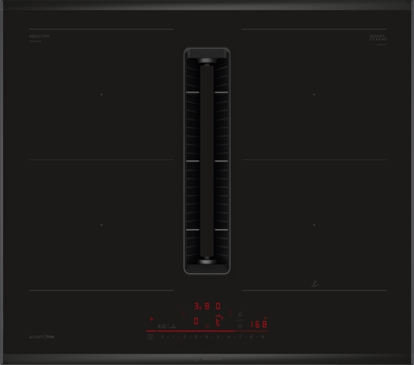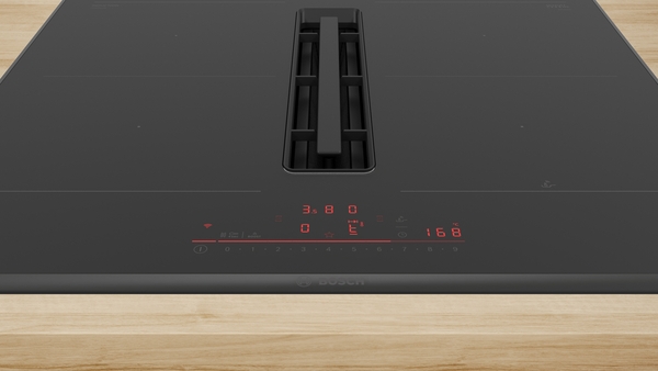 Integrētais ventilācijas modulis apvieno sevī labāko no mūsu indukcijas plīts virsmām un tvaika nosūcējiem. Tā kā tas ir iebūvēts plīts virsmā, tas savāc gatavošanas smaržas un tvaiku tieši tur, kur tie sākas. Tādējādi vairs nav nepieciešams atsevišķs tvaika nosūcējs, un tev ir vairāk vietas virs galvas skapīšiem un plauktiem – vai arī vienkārši brīvs skats pāri virtuvei.