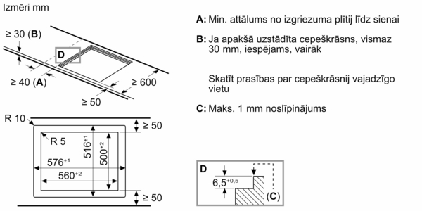 Nepieciešamā nišas vieta uzstādīšanai (AxPxD mm): 56 x 576 x 516