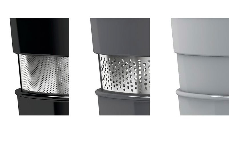 Trīs filtri (smalks, raupjš, sorbeta) veselīgu sulu, smūtiju un sorbetu gatavošanai