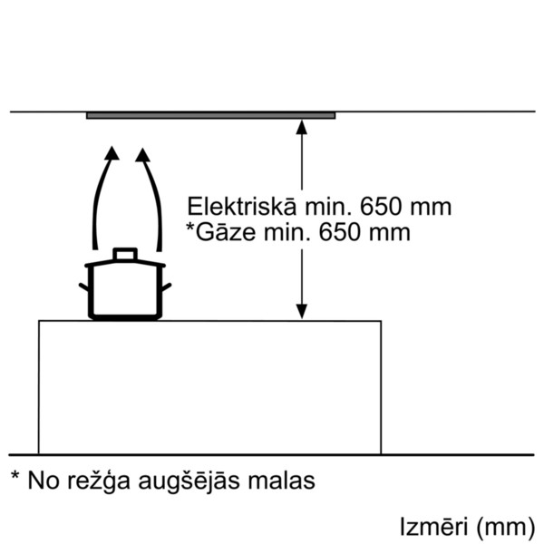 • Īpaši sagatavotiem skapjiem, kā arī virs savrupi stāvošām gatavošanas zonām