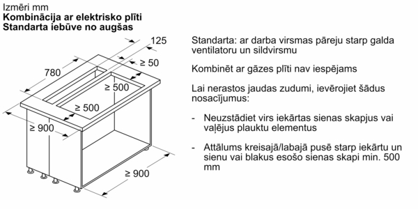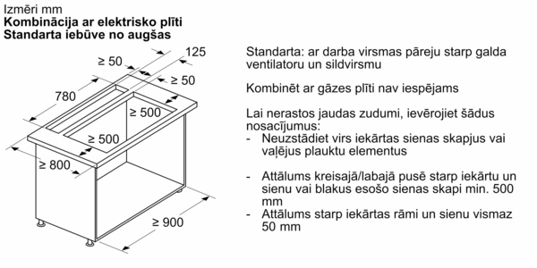 Piemērots uzstādīšanai virtuves salā vai virtuvē ar daļēju virtuves salas risinājumu