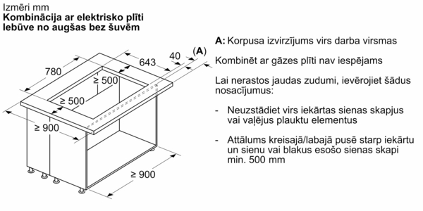 Skaidrs virsmas dizains: piemērots nevainojamai uzstādīšanai, lai radītu vienotu izskatu ar plīts virsmu (nepieciešami īpaši piederumi)