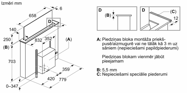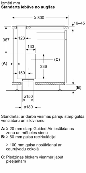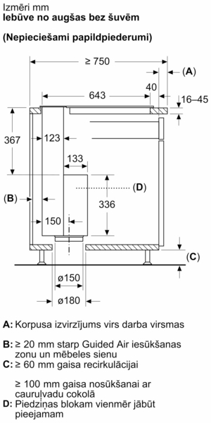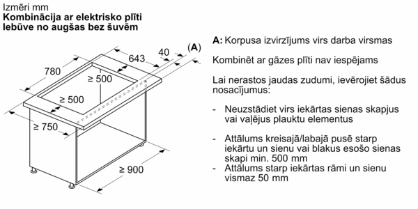 Lūdzu, skatiet iebūvēšanai nepieciešamos izmērus, kas norādīti uzstādīšanas rasējumos.