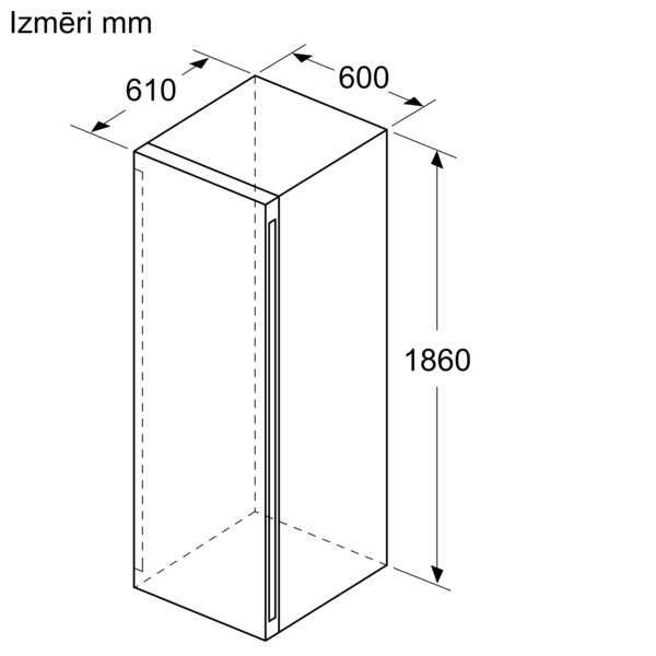 • Izmēri: augstums 186 x platums 60 x dziļums 61 cm
